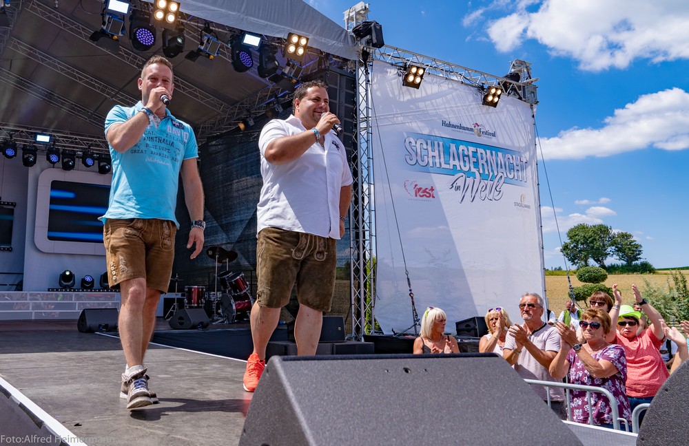 Zum Frühschoppen am Tag nachdem Schlager in Weiss kamen wieder ca.1500 Partyfreunde zum musikalischen Frühschoppen. Ochs am Spieß mit Knödel und Blaukraut war der Hit aus dem Catering von Stadelmann, aber auch gegrillte Ente war im Angebot. 15 Künstler traten in der Zeit von 13-17 Uhr auf, diesmal mit dem Scxhwerpunkt von Alpenrock. Es war ein schöner Tag!