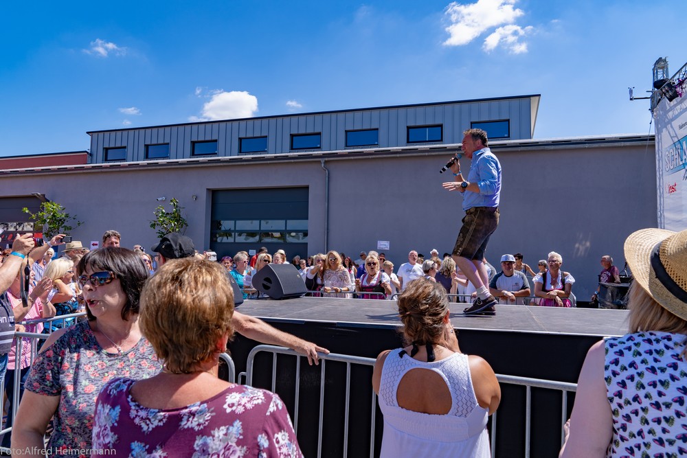 Zum Frühschoppen am Tag nachdem Schlager in Weiss kamen wieder ca.1500 Partyfreunde zum musikalischen Frühschoppen. Ochs am Spieß mit Knödel und Blaukraut war der Hit aus dem Catering von Stadelmann, aber auch gegrillte Ente war im Angebot. 15 Künstler traten in der Zeit von 13-17 Uhr auf, diesmal mit dem Scxhwerpunkt von Alpenrock. Es war ein schöner Tag!