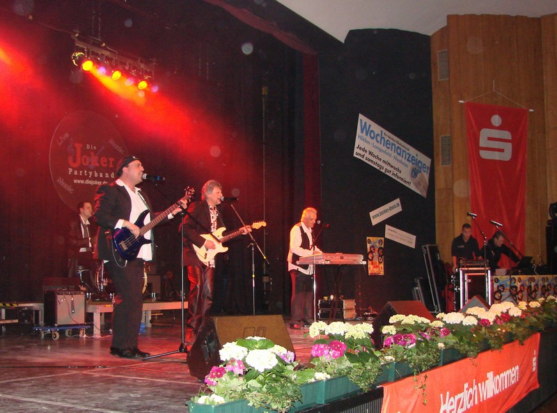 Schlagerparty Langenfeld Schlagerparty Langenfeld am 13.3.2009 Zu der Benefiz-Schlagerparty in Langenfeld waren ca. 450 Schlagerbegeisterte in die Stadthalle gekommen und erlebten ein 6 stündiges Programm aus Livemusik und DJ-Musik. Als Künstler waren Fernando Express, Graham Bonny und Leonhard auf der Bühne, aber auch ein Andrea Berg Double und die Band "die Jocker" sorgten für Stimmung. |