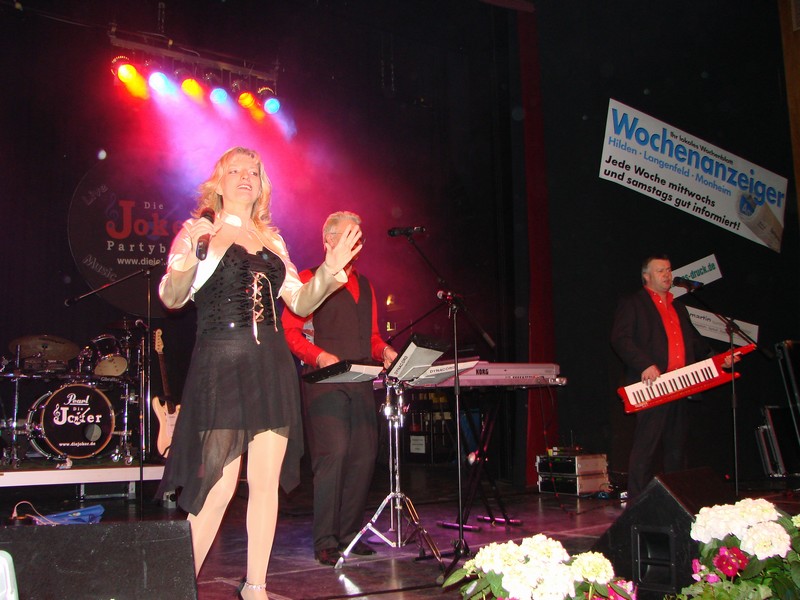 Schlagerparty Langenfeld Schlagerparty Langenfeld am 13.3.2009 Zu der Benefiz-Schlagerparty in Langenfeld waren ca. 450 Schlagerbegeisterte in die Stadthalle gekommen und erlebten ein 6 stündiges Programm aus Livemusik und DJ-Musik. Als Künstler waren Fernando Express, Graham Bonny und Leonhard auf der Bühne, aber auch ein Andrea Berg Double und die Band "die Jocker" sorgten für Stimmung. |