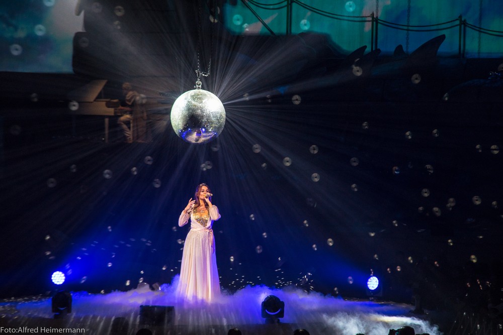 Seelenbeben mit Andrea Berg, Mannheim SAP-Arena Mannheim, 21.1.2017 10000 Besucher erlebten Andrea Berg bei ihrem Konzert in der Mannheimer SAP Arena und wurden bestens unterhalten. 2 junge Damen durften mit Andrea die Bühne betreten und ein Lioed mit ihr singen, man merkte ihnen die Freud an. Andrea fordete gegen Ende der Show zum Discofox auf und rief zur Damenwahl auf, was von ihren 3 Tänzerinnen und den beiden Backround Sängerinnen befolgt wurde, sie holten sich Männer aus dem Publikum und tanzten auf der Bühne, während Andrea sang. Ein neuer Gag der Show, der gut ankam. |