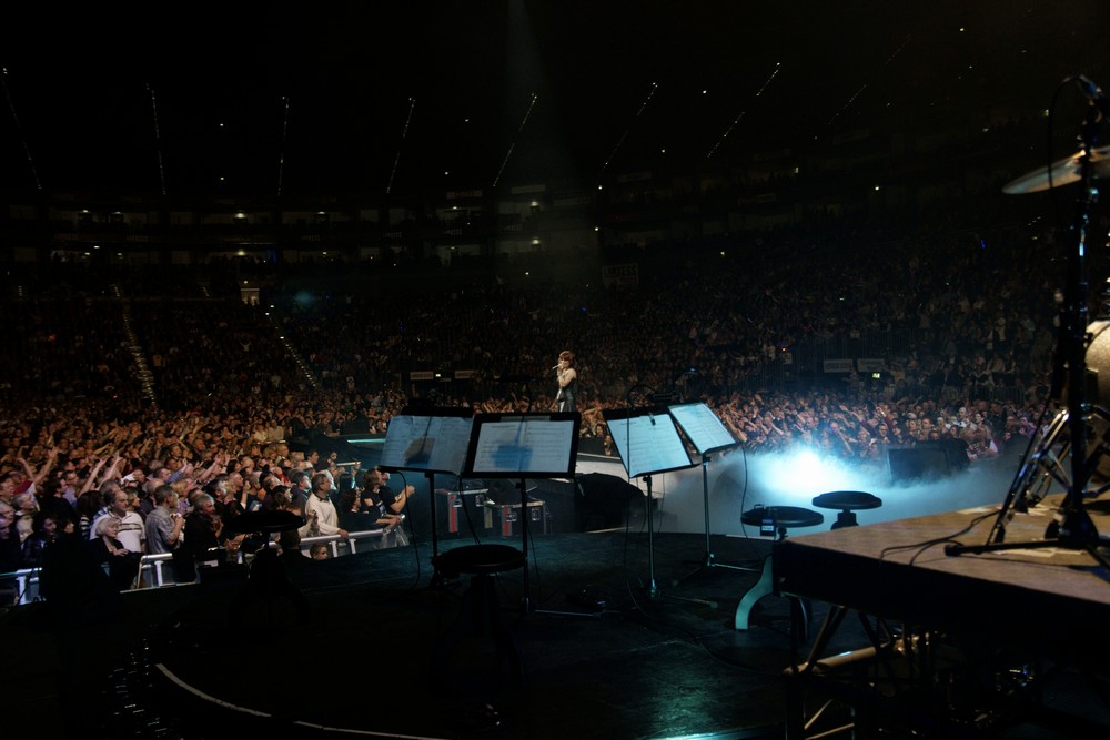 Tourfinale in Köln Konzert Lanxess Arena Über 10 000 Besucher waren zum letzten Konzert der Tour "Zwischen Himmel & Erde" in die Lanxess Arena gekommen und erlebten ein Finale mit "kölsche Leeder", die Andrea mit Erry Stoklosa von den Bläck Fööss und Paveier-Sänger Micky Brühl gemeinsam sang. "Et wor janz doll" Auf der After Tour Party erhielt Andrea und ihr Team jeweils eine Platinauszeichnung für 50 0000 verkaufte DVDs " Zwischen Himel & Erde -DAS KONZERT" . |