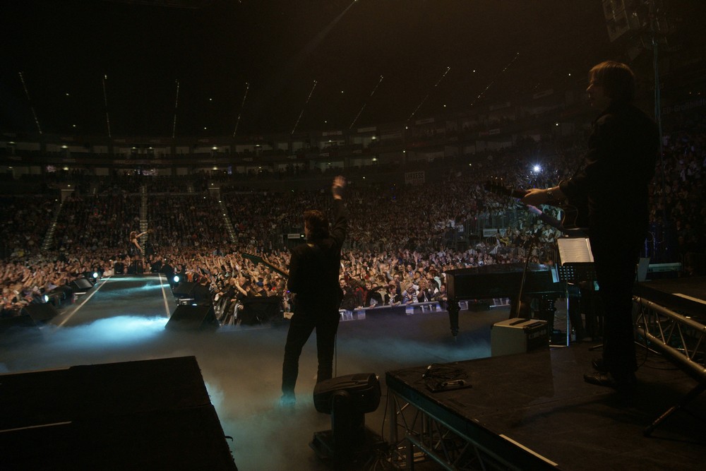 Tourfinale in Köln Konzert Lanxess Arena Über 10 000 Besucher waren zum letzten Konzert der Tour "Zwischen Himmel & Erde" in die Lanxess Arena gekommen und erlebten ein Finale mit "kölsche Leeder", die Andrea mit Erry Stoklosa von den Bläck Fööss und Paveier-Sänger Micky Brühl gemeinsam sang. "Et wor janz doll" Auf der After Tour Party erhielt Andrea und ihr Team jeweils eine Platinauszeichnung für 50 0000 verkaufte DVDs " Zwischen Himel & Erde -DAS KONZERT" . |