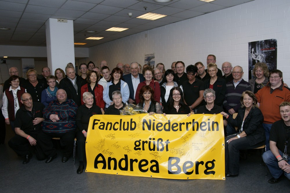 Tourfinale in Köln Konzert Lanxess Arena Über 10 000 Besucher waren zum letzten Konzert der Tour "Zwischen Himmel & Erde" in die Lanxess Arena gekommen und erlebten ein Finale mit "kölsche Leeder", die Andrea mit Erry Stoklosa von den Bläck Fööss und Paveier-Sänger Micky Brühl gemeinsam sang. "Et wor janz doll" Auf der After Tour Party erhielt Andrea und ihr Team jeweils eine Platinauszeichnung für 50 0000 verkaufte DVDs " Zwischen Himel & Erde -DAS KONZERT" . |