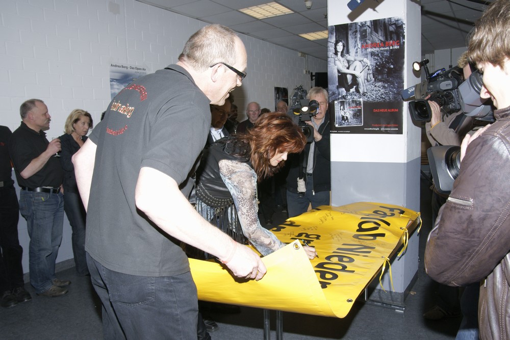 Tourfinale in Köln Konzert Lanxess Arena Über 10 000 Besucher waren zum letzten Konzert der Tour "Zwischen Himmel & Erde" in die Lanxess Arena gekommen und erlebten ein Finale mit "kölsche Leeder", die Andrea mit Erry Stoklosa von den Bläck Fööss und Paveier-Sänger Micky Brühl gemeinsam sang. "Et wor janz doll" Auf der After Tour Party erhielt Andrea und ihr Team jeweils eine Platinauszeichnung für 50 0000 verkaufte DVDs " Zwischen Himel & Erde -DAS KONZERT" . |