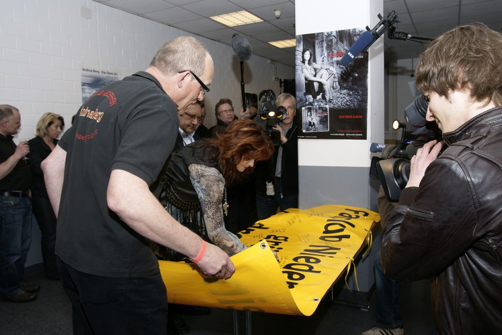 Tourfinale in Köln Konzert Lanxess Arena Über 10 000 Besucher waren zum letzten Konzert der Tour "Zwischen Himmel & Erde" in die Lanxess Arena gekommen und erlebten ein Finale mit "kölsche Leeder", die Andrea mit Erry Stoklosa von den Bläck Fööss und Paveier-Sänger Micky Brühl gemeinsam sang. "Et wor janz doll" Auf der After Tour Party erhielt Andrea und ihr Team jeweils eine Platinauszeichnung für 50 0000 verkaufte DVDs " Zwischen Himel & Erde -DAS KONZERT" . |