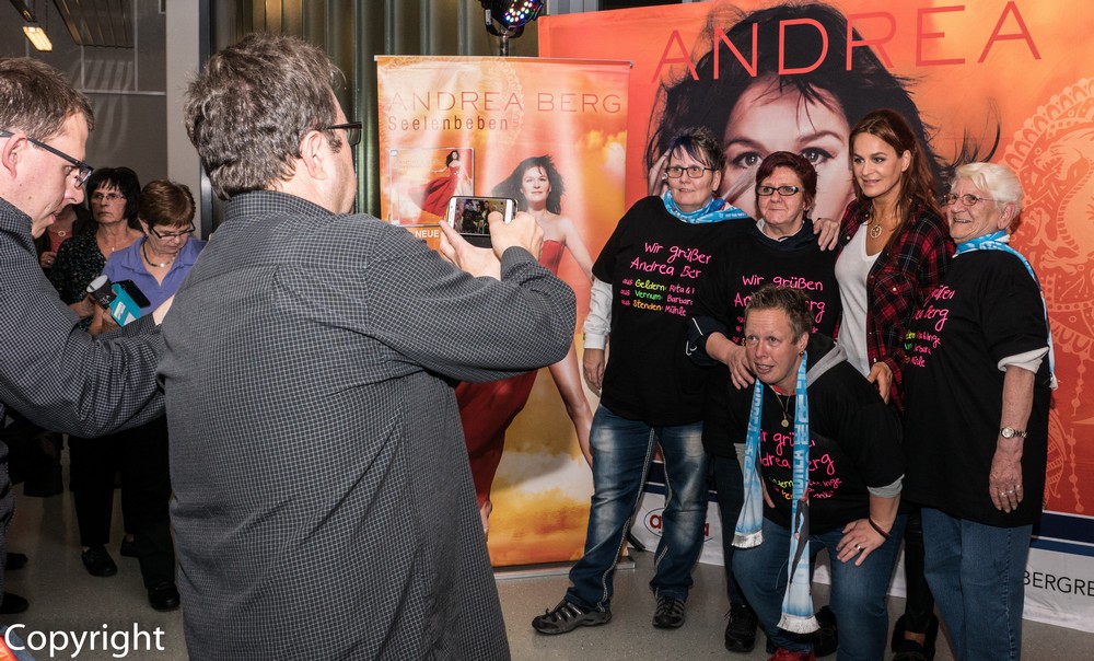 Tourstart Andrea Berg in Krefeld und mein 300. Konzert von Andrea Krefeld, Königspalast Ausverkauft war der Königspalast in Krefeld, wo Andrea am 14.10.2016 ihr Seelenbeben Tournee startete. Es war das erstenmal, dass sie in ihrer Heimadstadt gstierte und wurde dementsprechen gefeiert. Gut 500 Feuerwehrmänner und Karnevalisten der prinzengarde Krefeld begrüssten Andrea vor dem Königspalast. Die Feuerwehr war mit einem Rüstwagen aus den 50er Jahren anegrückt, den schon ihr Vater gefahren war, in seiner Zeit bei der Feuerwehr, was natürlich Andrea zu Tränen rührte. Das 1. Konzert der Tournee begeisterte die Krefelder und die angereisten Fans. Nach dem Konzert stand Andrea noch für alle für Fotos mit den Fans und Freunden zur Verfügung und freute sich ber viele Krefelder Nachbarn, Freunde und Bekannte...es war für sie ein besonderes Konzert. Der Fankalender vom FC Hennef fand guten Absatz, ebenso die Gedichtbücher von Karni Meincke (Bürgermeisterin von Krefeld und Vorsitzende der Hospizstiftung Krefleld). Der Erlös der Bücher und der Fankalender kommt der Hospizarbeit Krefled zu Gute. |