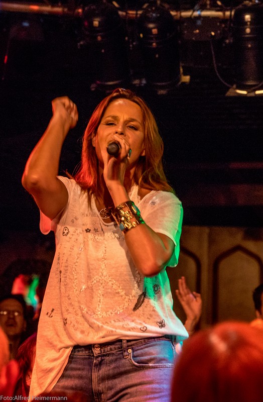 Es war ein schöner Sonnentag in Aspach und alles wirkte so grün um den Sonnenhof herum. In der Hazienda war es auch angenehm, da man gut lüftete und es war auch nicht so voll wie sonst. Viele fremde Gesichter im Publikum, denke die meisten Hardcorefans kommen zum Konzert am 7.6., aöso nach Pfingsten. Andrea erzählte von ihrem 25-jährigen Bühnenjubiläum als Andrea Berg und stellte die bislang in der Gunst der Fans beliebtesten 25 Songs vor. Sie erzählte auch, dass sie mit dem Jubiläumsalbum dann auf Tour geht, aber nicht in Arenen, sondern wie früher in 25 kleine Clubs. Natürlich stand sie nachdem Konzert für Fotos bereit.