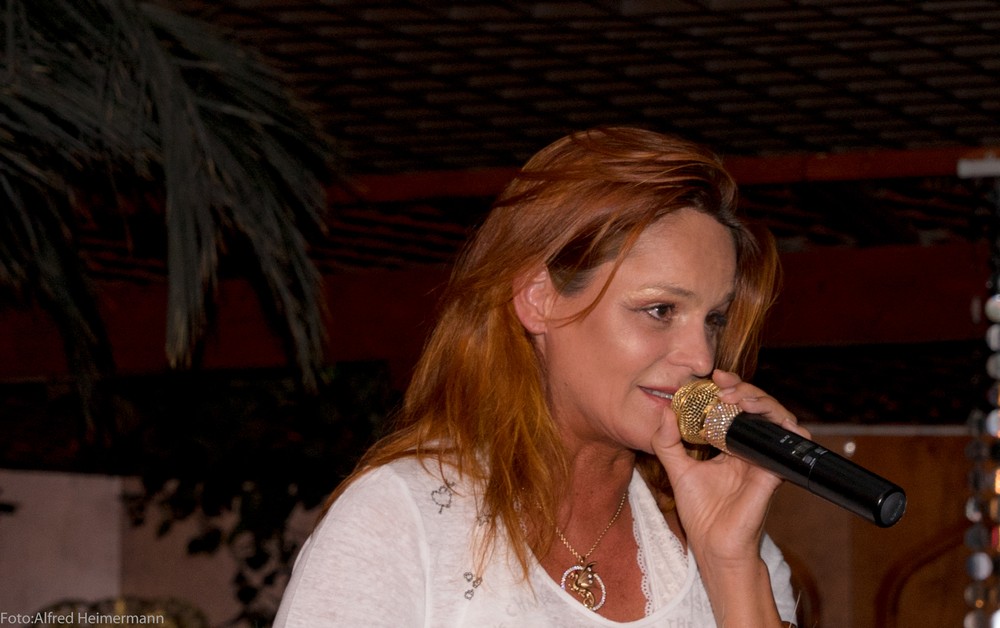 Es war ein schöner Sonnentag in Aspach und alles wirkte so grün um den Sonnenhof herum. In der Hazienda war es auch angenehm, da man gut lüftete und es war auch nicht so voll wie sonst. Viele fremde Gesichter im Publikum, denke die meisten Hardcorefans kommen zum Konzert am 7.6., aöso nach Pfingsten. Andrea erzählte von ihrem 25-jährigen Bühnenjubiläum als Andrea Berg und stellte die bislang in der Gunst der Fans beliebtesten 25 Songs vor. Sie erzählte auch, dass sie mit dem Jubiläumsalbum dann auf Tour geht, aber nicht in Arenen, sondern wie früher in 25 kleine Clubs. Natürlich stand sie nachdem Konzert für Fotos bereit.