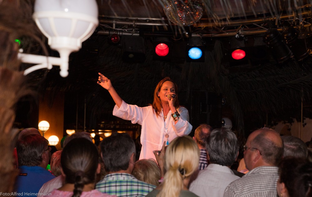 Es war ein schöner Sonnentag in Aspach und alles wirkte so grün um den Sonnenhof herum. In der Hazienda war es auch angenehm, da man gut lüftete und es war auch nicht so voll wie sonst. Viele fremde Gesichter im Publikum, denke die meisten Hardcorefans kommen zum Konzert am 7.6., aöso nach Pfingsten. Andrea erzählte von ihrem 25-jährigen Bühnenjubiläum als Andrea Berg und stellte die bislang in der Gunst der Fans beliebtesten 25 Songs vor. Sie erzählte auch, dass sie mit dem Jubiläumsalbum dann auf Tour geht, aber nicht in Arenen, sondern wie früher in 25 kleine Clubs. Natürlich stand sie nachdem Konzert für Fotos bereit.