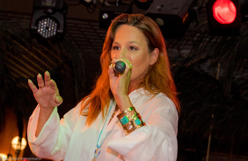 Es war ein schöner Sonnentag in Aspach und alles wirkte so grün um den Sonnenhof herum. In der Hazienda war es auch angenehm, da man gut lüftete und es war auch nicht so voll wie sonst. Viele fremde Gesichter im Publikum, denke die meisten Hardcorefans kommen zum Konzert am 7.6., aöso nach Pfingsten. Andrea erzählte von ihrem 25-jährigen Bühnenjubiläum als Andrea Berg und stellte die bislang in der Gunst der Fans beliebtesten 25 Songs vor. Sie erzählte auch, dass sie mit dem Jubiläumsalbum dann auf Tour geht, aber nicht in Arenen, sondern wie früher in 25 kleine Clubs. Natürlich stand sie nachdem Konzert für Fotos bereit.