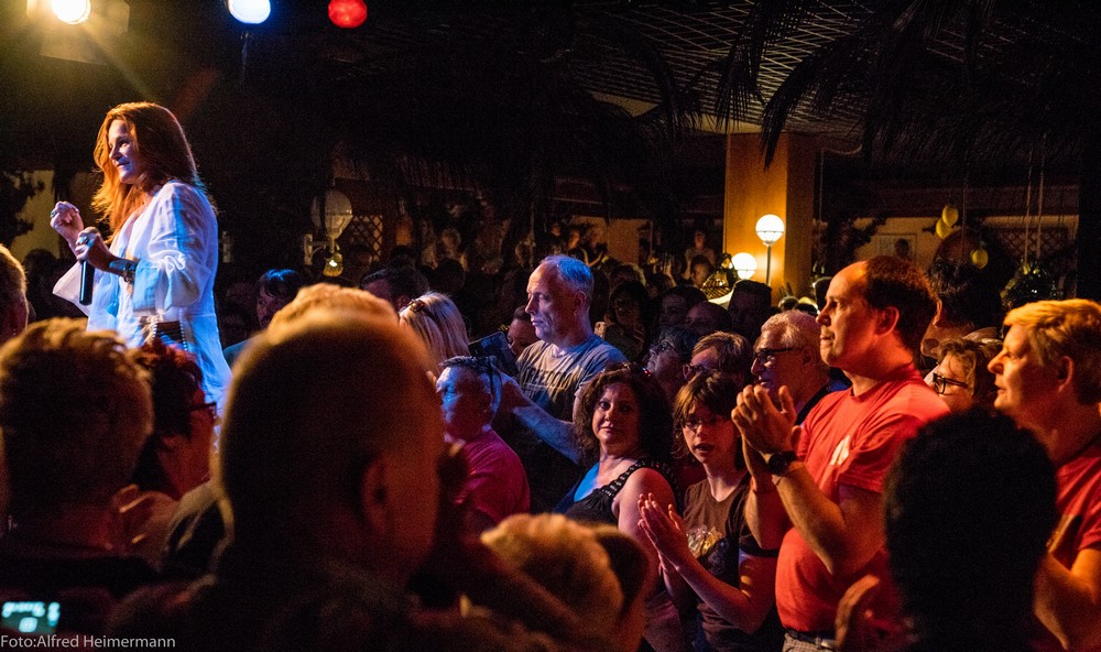 Es war ein schöner Sonnentag in Aspach und alles wirkte so grün um den Sonnenhof herum. In der Hazienda war es auch angenehm, da man gut lüftete und es war auch nicht so voll wie sonst. Viele fremde Gesichter im Publikum, denke die meisten Hardcorefans kommen zum Konzert am 7.6., aöso nach Pfingsten. Andrea erzählte von ihrem 25-jährigen Bühnenjubiläum als Andrea Berg und stellte die bislang in der Gunst der Fans beliebtesten 25 Songs vor. Sie erzählte auch, dass sie mit dem Jubiläumsalbum dann auf Tour geht, aber nicht in Arenen, sondern wie früher in 25 kleine Clubs. Natürlich stand sie nachdem Konzert für Fotos bereit.