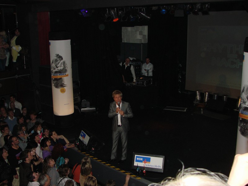 WDR4-Rythmus der Nacht WDR4 12 Künstler waren auf das Rhein-Energie-Schiff der KD am Freitag den 27.3.2009 zum Ryhtmus der Nacht gekommen um mit 1300 Fans eine tolle Party zu feiren, die bis tief in die Nacht dauerte. Mit dabei waren: Andreas Martin, Gaby Baginsky, Fantasy, Oliver Frank, Christian Anders,G.G. Anderson, Sandy Wagner, Nico Gemga, Oliver Lukas, Mattias Carras, Lukas Bach und Anna Katharina Stoll. Präsentiert wurde die Party von Herrn Brügggemann und von Begasse. |