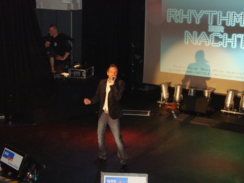 WDR4-Rythmus der Nacht WDR4 12 Künstler waren auf das Rhein-Energie-Schiff der KD am Freitag den 27.3.2009 zum Ryhtmus der Nacht gekommen um mit 1300 Fans eine tolle Party zu feiren, die bis tief in die Nacht dauerte. Mit dabei waren: Andreas Martin, Gaby Baginsky, Fantasy, Oliver Frank, Christian Anders,G.G. Anderson, Sandy Wagner, Nico Gemga, Oliver Lukas, Mattias Carras, Lukas Bach und Anna Katharina Stoll. Präsentiert wurde die Party von Herrn Brügggemann und von Begasse. |