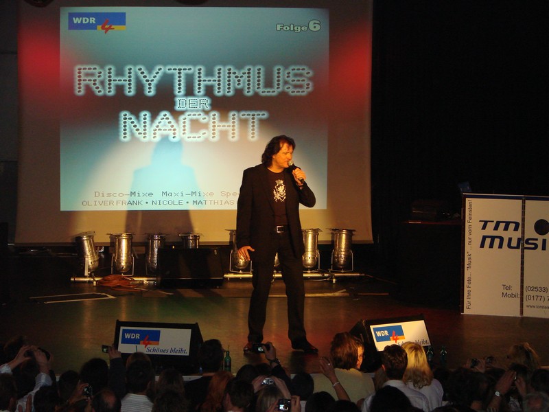 WDR4-Rythmus der Nacht WDR4 12 Künstler waren auf das Rhein-Energie-Schiff der KD am Freitag den 27.3.2009 zum Ryhtmus der Nacht gekommen um mit 1300 Fans eine tolle Party zu feiren, die bis tief in die Nacht dauerte. Mit dabei waren: Andreas Martin, Gaby Baginsky, Fantasy, Oliver Frank, Christian Anders,G.G. Anderson, Sandy Wagner, Nico Gemga, Oliver Lukas, Mattias Carras, Lukas Bach und Anna Katharina Stoll. Präsentiert wurde die Party von Herrn Brügggemann und von Begasse. |