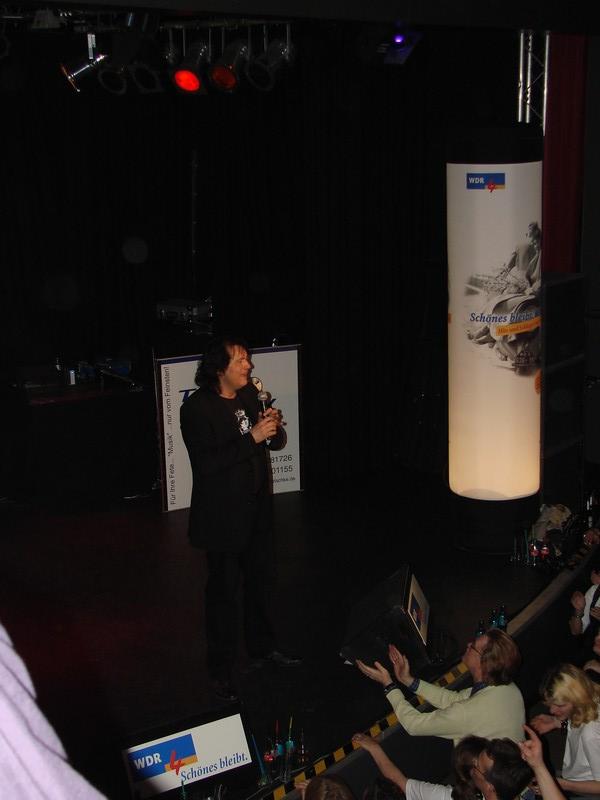 WDR4-Rythmus der Nacht WDR4 12 Künstler waren auf das Rhein-Energie-Schiff der KD am Freitag den 27.3.2009 zum Ryhtmus der Nacht gekommen um mit 1300 Fans eine tolle Party zu feiren, die bis tief in die Nacht dauerte. Mit dabei waren: Andreas Martin, Gaby Baginsky, Fantasy, Oliver Frank, Christian Anders,G.G. Anderson, Sandy Wagner, Nico Gemga, Oliver Lukas, Mattias Carras, Lukas Bach und Anna Katharina Stoll. Präsentiert wurde die Party von Herrn Brügggemann und von Begasse. |