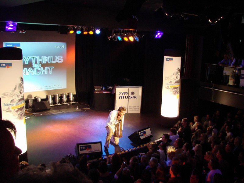 WDR4-Rythmus der Nacht WDR4 12 Künstler waren auf das Rhein-Energie-Schiff der KD am Freitag den 27.3.2009 zum Ryhtmus der Nacht gekommen um mit 1300 Fans eine tolle Party zu feiren, die bis tief in die Nacht dauerte. Mit dabei waren: Andreas Martin, Gaby Baginsky, Fantasy, Oliver Frank, Christian Anders,G.G. Anderson, Sandy Wagner, Nico Gemga, Oliver Lukas, Mattias Carras, Lukas Bach und Anna Katharina Stoll. Präsentiert wurde die Party von Herrn Brügggemann und von Begasse. |