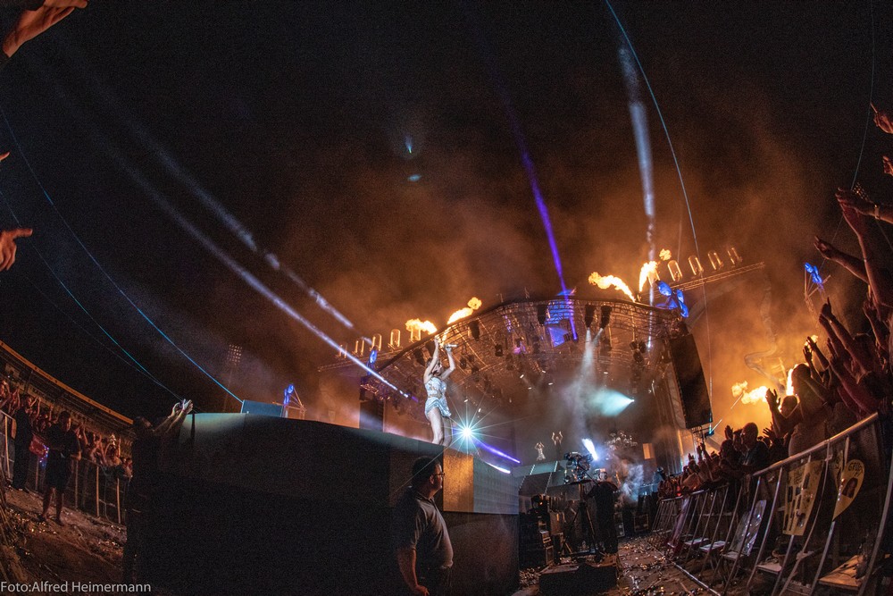 13._Heimspiel_Andrea_Berg__Freitag(1) Mechatronikarena Aspach, 20.7.2018 15000 Besucher waren zum 1. Konzert des 13. Andrea Berg Heimspiel in die Arena in der Fautenau gekommen. Durch die Hitze waren im Vorprogramm nicht soviele Fans wie sonst an der Bühne. Rebel Tell und Sunrise waren Künstler, die im Vorprogramm für die meiste Stimmung sorgten, aber es traten noch andere Künstler auf, u.a. eine Sängerin aus Kleinaspach. Gegen 21 Uhr dann der große Moment, als der Schmetterlingvorhang fiel und Andrea ihr 3 stündiges Konzert begann, sie strahlte mit einem lächeln den ganzen Abend, man merkte, sie freute sich, so wie auch ihre Fans. Mit einem großen Feuerwerk endete ein schöner Sommerabend. |