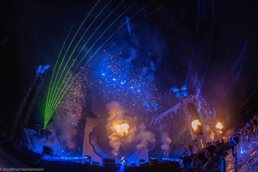 13._Heimspiel_Andrea_Berg__Freitag(1) Mechatronikarena Aspach, 20.7.2018 15000 Besucher waren zum 1. Konzert des 13. Andrea Berg Heimspiel in die Arena in der Fautenau gekommen. Durch die Hitze waren im Vorprogramm nicht soviele Fans wie sonst an der Bühne. Rebel Tell und Sunrise waren Künstler, die im Vorprogramm für die meiste Stimmung sorgten, aber es traten noch andere Künstler auf, u.a. eine Sängerin aus Kleinaspach. Gegen 21 Uhr dann der große Moment, als der Schmetterlingvorhang fiel und Andrea ihr 3 stündiges Konzert begann, sie strahlte mit einem lächeln den ganzen Abend, man merkte, sie freute sich, so wie auch ihre Fans. Mit einem großen Feuerwerk endete ein schöner Sommerabend. |
