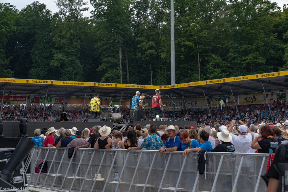 13._Heimspiel_Andrea_Berg__Freitag(1) Mechatronikarena Aspach, 20.7.2018 15000 Besucher waren zum 1. Konzert des 13. Andrea Berg Heimspiel in die Arena in der Fautenau gekommen. Durch die Hitze waren im Vorprogramm nicht soviele Fans wie sonst an der Bühne. Rebel Tell und Sunrise waren Künstler, die im Vorprogramm für die meiste Stimmung sorgten, aber es traten noch andere Künstler auf, u.a. eine Sängerin aus Kleinaspach. Gegen 21 Uhr dann der große Moment, als der Schmetterlingvorhang fiel und Andrea ihr 3 stündiges Konzert begann, sie strahlte mit einem lächeln den ganzen Abend, man merkte, sie freute sich, so wie auch ihre Fans. Mit einem großen Feuerwerk endete ein schöner Sommerabend. |