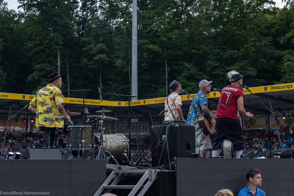 13._Heimspiel_Andrea_Berg__Freitag(1) Mechatronikarena Aspach, 20.7.2018 15000 Besucher waren zum 1. Konzert des 13. Andrea Berg Heimspiel in die Arena in der Fautenau gekommen. Durch die Hitze waren im Vorprogramm nicht soviele Fans wie sonst an der Bühne. Rebel Tell und Sunrise waren Künstler, die im Vorprogramm für die meiste Stimmung sorgten, aber es traten noch andere Künstler auf, u.a. eine Sängerin aus Kleinaspach. Gegen 21 Uhr dann der große Moment, als der Schmetterlingvorhang fiel und Andrea ihr 3 stündiges Konzert begann, sie strahlte mit einem lächeln den ganzen Abend, man merkte, sie freute sich, so wie auch ihre Fans. Mit einem großen Feuerwerk endete ein schöner Sommerabend. |