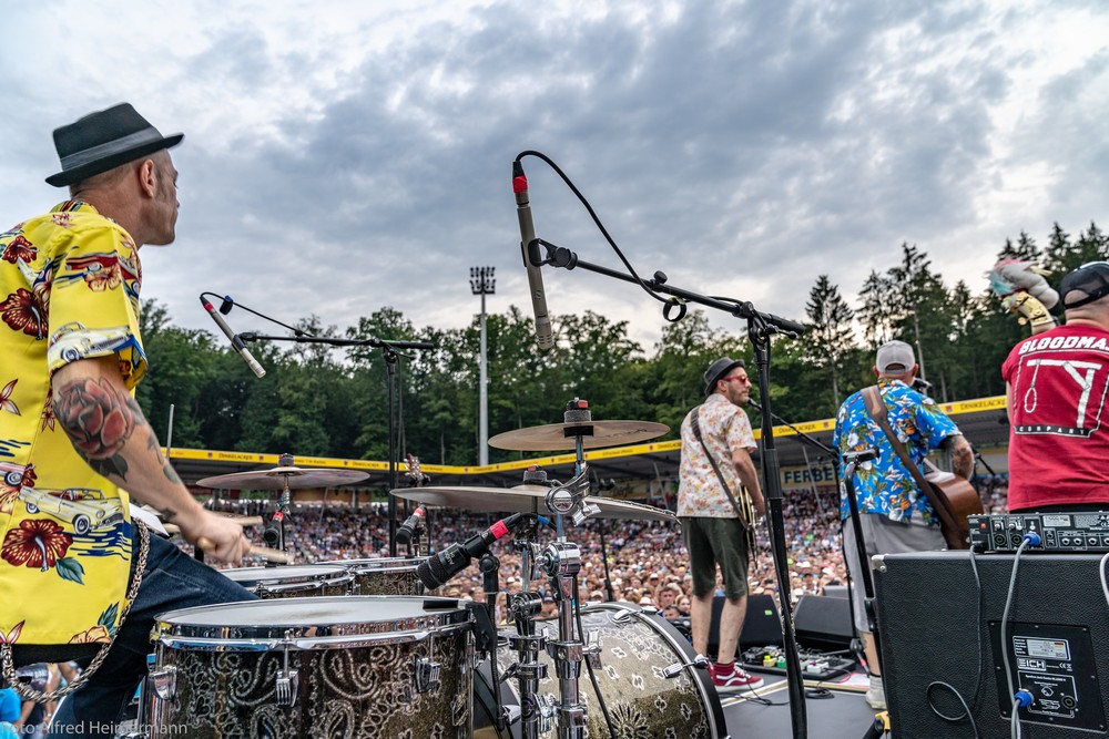 13._Heimspiel_Andrea_Berg__Freitag(1) Mechatronikarena Aspach, 20.7.2018 15000 Besucher waren zum 1. Konzert des 13. Andrea Berg Heimspiel in die Arena in der Fautenau gekommen. Durch die Hitze waren im Vorprogramm nicht soviele Fans wie sonst an der Bühne. Rebel Tell und Sunrise waren Künstler, die im Vorprogramm für die meiste Stimmung sorgten, aber es traten noch andere Künstler auf, u.a. eine Sängerin aus Kleinaspach. Gegen 21 Uhr dann der große Moment, als der Schmetterlingvorhang fiel und Andrea ihr 3 stündiges Konzert begann, sie strahlte mit einem lächeln den ganzen Abend, man merkte, sie freute sich, so wie auch ihre Fans. Mit einem großen Feuerwerk endete ein schöner Sommerabend. |