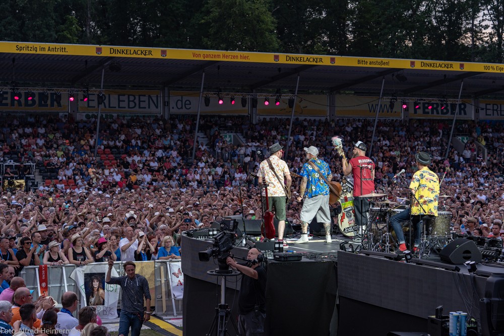 13._Heimspiel_Andrea_Berg__Freitag(1) Mechatronikarena Aspach, 20.7.2018 15000 Besucher waren zum 1. Konzert des 13. Andrea Berg Heimspiel in die Arena in der Fautenau gekommen. Durch die Hitze waren im Vorprogramm nicht soviele Fans wie sonst an der Bühne. Rebel Tell und Sunrise waren Künstler, die im Vorprogramm für die meiste Stimmung sorgten, aber es traten noch andere Künstler auf, u.a. eine Sängerin aus Kleinaspach. Gegen 21 Uhr dann der große Moment, als der Schmetterlingvorhang fiel und Andrea ihr 3 stündiges Konzert begann, sie strahlte mit einem lächeln den ganzen Abend, man merkte, sie freute sich, so wie auch ihre Fans. Mit einem großen Feuerwerk endete ein schöner Sommerabend. |
