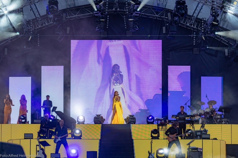 13._Heimspiel_Andrea_Berg__Freitag(1) Mechatronikarena Aspach, 20.7.2018 15000 Besucher waren zum 1. Konzert des 13. Andrea Berg Heimspiel in die Arena in der Fautenau gekommen. Durch die Hitze waren im Vorprogramm nicht soviele Fans wie sonst an der Bühne. Rebel Tell und Sunrise waren Künstler, die im Vorprogramm für die meiste Stimmung sorgten, aber es traten noch andere Künstler auf, u.a. eine Sängerin aus Kleinaspach. Gegen 21 Uhr dann der große Moment, als der Schmetterlingvorhang fiel und Andrea ihr 3 stündiges Konzert begann, sie strahlte mit einem lächeln den ganzen Abend, man merkte, sie freute sich, so wie auch ihre Fans. Mit einem großen Feuerwerk endete ein schöner Sommerabend. |