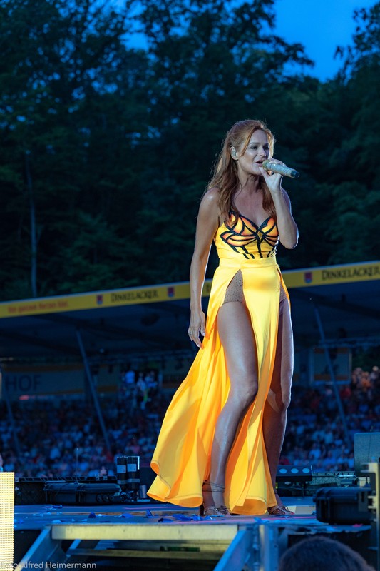 13._Heimspiel_Andrea_Berg__Freitag(1) Mechatronikarena Aspach, 20.7.2018 15000 Besucher waren zum 1. Konzert des 13. Andrea Berg Heimspiel in die Arena in der Fautenau gekommen. Durch die Hitze waren im Vorprogramm nicht soviele Fans wie sonst an der Bühne. Rebel Tell und Sunrise waren Künstler, die im Vorprogramm für die meiste Stimmung sorgten, aber es traten noch andere Künstler auf, u.a. eine Sängerin aus Kleinaspach. Gegen 21 Uhr dann der große Moment, als der Schmetterlingvorhang fiel und Andrea ihr 3 stündiges Konzert begann, sie strahlte mit einem lächeln den ganzen Abend, man merkte, sie freute sich, so wie auch ihre Fans. Mit einem großen Feuerwerk endete ein schöner Sommerabend. |