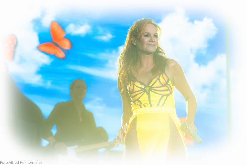 13._Heimspiel_Andrea_Berg__Freitag(1) Mechatronikarena Aspach, 20.7.2018 15000 Besucher waren zum 1. Konzert des 13. Andrea Berg Heimspiel in die Arena in der Fautenau gekommen. Durch die Hitze waren im Vorprogramm nicht soviele Fans wie sonst an der Bühne. Rebel Tell und Sunrise waren Künstler, die im Vorprogramm für die meiste Stimmung sorgten, aber es traten noch andere Künstler auf, u.a. eine Sängerin aus Kleinaspach. Gegen 21 Uhr dann der große Moment, als der Schmetterlingvorhang fiel und Andrea ihr 3 stündiges Konzert begann, sie strahlte mit einem lächeln den ganzen Abend, man merkte, sie freute sich, so wie auch ihre Fans. Mit einem großen Feuerwerk endete ein schöner Sommerabend. |