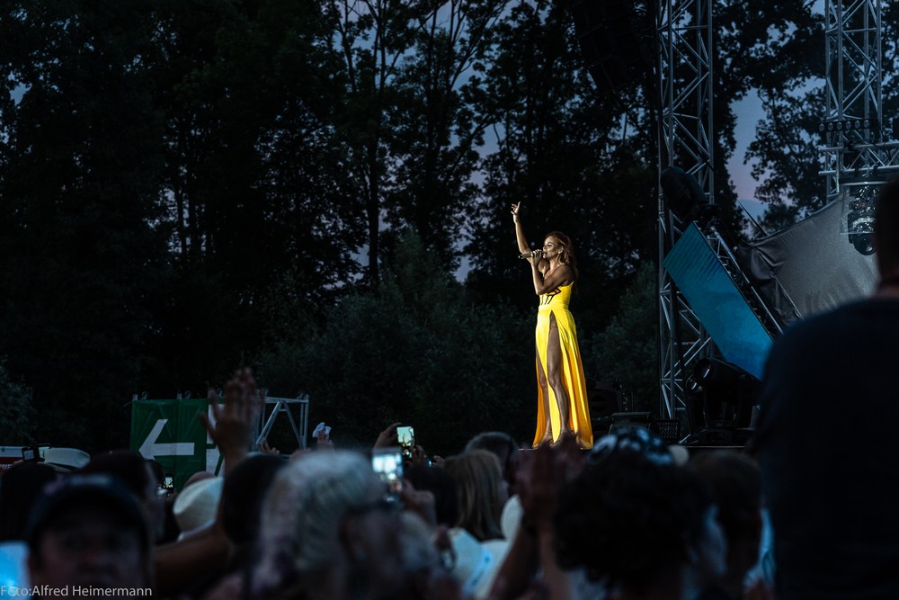 13._Heimspiel_Andrea_Berg__Freitag(1) Mechatronikarena Aspach, 20.7.2018 15000 Besucher waren zum 1. Konzert des 13. Andrea Berg Heimspiel in die Arena in der Fautenau gekommen. Durch die Hitze waren im Vorprogramm nicht soviele Fans wie sonst an der Bühne. Rebel Tell und Sunrise waren Künstler, die im Vorprogramm für die meiste Stimmung sorgten, aber es traten noch andere Künstler auf, u.a. eine Sängerin aus Kleinaspach. Gegen 21 Uhr dann der große Moment, als der Schmetterlingvorhang fiel und Andrea ihr 3 stündiges Konzert begann, sie strahlte mit einem lächeln den ganzen Abend, man merkte, sie freute sich, so wie auch ihre Fans. Mit einem großen Feuerwerk endete ein schöner Sommerabend. |