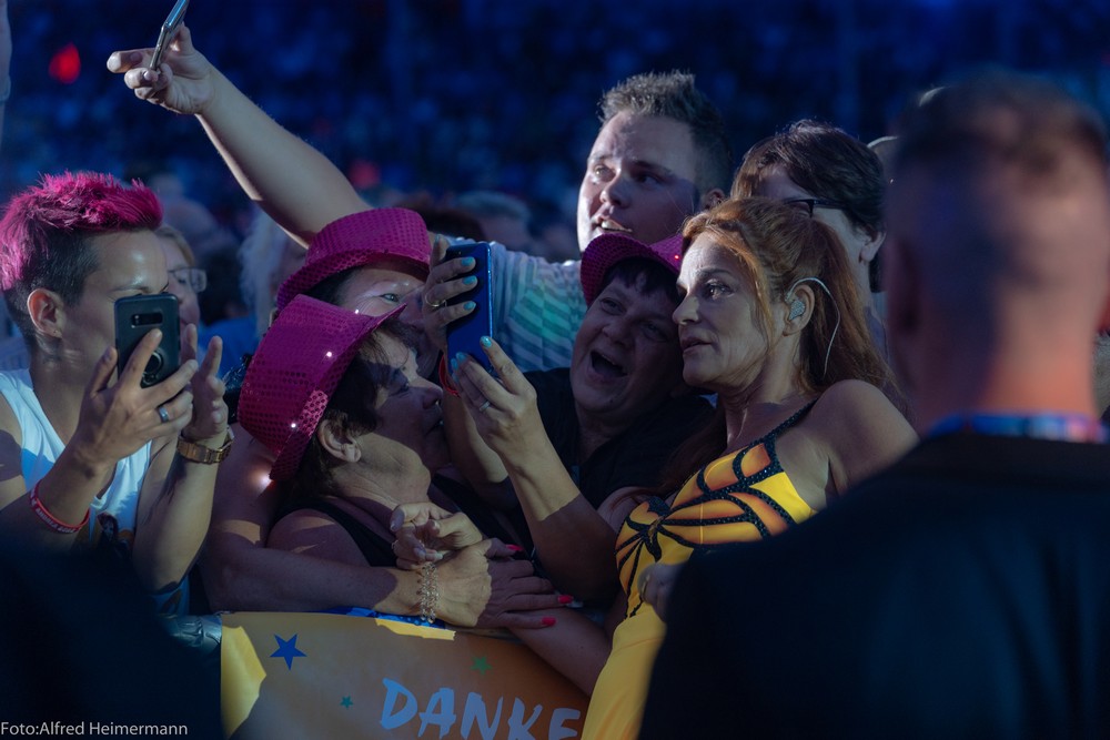 13._Heimspiel_Andrea_Berg__Freitag(1) Mechatronikarena Aspach, 20.7.2018 15000 Besucher waren zum 1. Konzert des 13. Andrea Berg Heimspiel in die Arena in der Fautenau gekommen. Durch die Hitze waren im Vorprogramm nicht soviele Fans wie sonst an der Bühne. Rebel Tell und Sunrise waren Künstler, die im Vorprogramm für die meiste Stimmung sorgten, aber es traten noch andere Künstler auf, u.a. eine Sängerin aus Kleinaspach. Gegen 21 Uhr dann der große Moment, als der Schmetterlingvorhang fiel und Andrea ihr 3 stündiges Konzert begann, sie strahlte mit einem lächeln den ganzen Abend, man merkte, sie freute sich, so wie auch ihre Fans. Mit einem großen Feuerwerk endete ein schöner Sommerabend. |