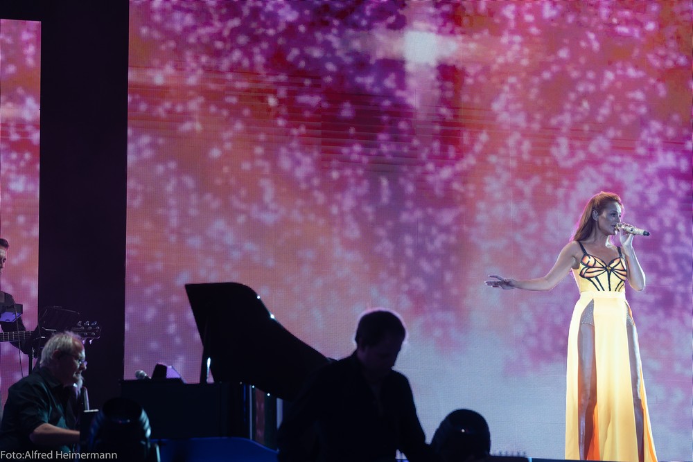 13._Heimspiel_Andrea_Berg__Freitag(1) Mechatronikarena Aspach, 20.7.2018 15000 Besucher waren zum 1. Konzert des 13. Andrea Berg Heimspiel in die Arena in der Fautenau gekommen. Durch die Hitze waren im Vorprogramm nicht soviele Fans wie sonst an der Bühne. Rebel Tell und Sunrise waren Künstler, die im Vorprogramm für die meiste Stimmung sorgten, aber es traten noch andere Künstler auf, u.a. eine Sängerin aus Kleinaspach. Gegen 21 Uhr dann der große Moment, als der Schmetterlingvorhang fiel und Andrea ihr 3 stündiges Konzert begann, sie strahlte mit einem lächeln den ganzen Abend, man merkte, sie freute sich, so wie auch ihre Fans. Mit einem großen Feuerwerk endete ein schöner Sommerabend. |