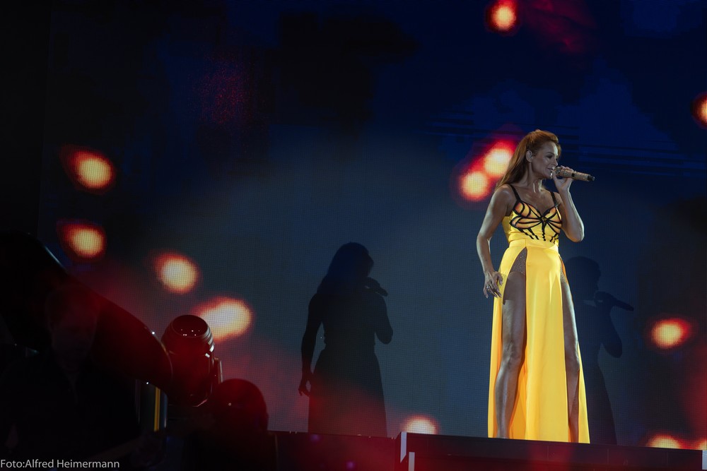 13._Heimspiel_Andrea_Berg__Freitag(1) Mechatronikarena Aspach, 20.7.2018 15000 Besucher waren zum 1. Konzert des 13. Andrea Berg Heimspiel in die Arena in der Fautenau gekommen. Durch die Hitze waren im Vorprogramm nicht soviele Fans wie sonst an der Bühne. Rebel Tell und Sunrise waren Künstler, die im Vorprogramm für die meiste Stimmung sorgten, aber es traten noch andere Künstler auf, u.a. eine Sängerin aus Kleinaspach. Gegen 21 Uhr dann der große Moment, als der Schmetterlingvorhang fiel und Andrea ihr 3 stündiges Konzert begann, sie strahlte mit einem lächeln den ganzen Abend, man merkte, sie freute sich, so wie auch ihre Fans. Mit einem großen Feuerwerk endete ein schöner Sommerabend. |