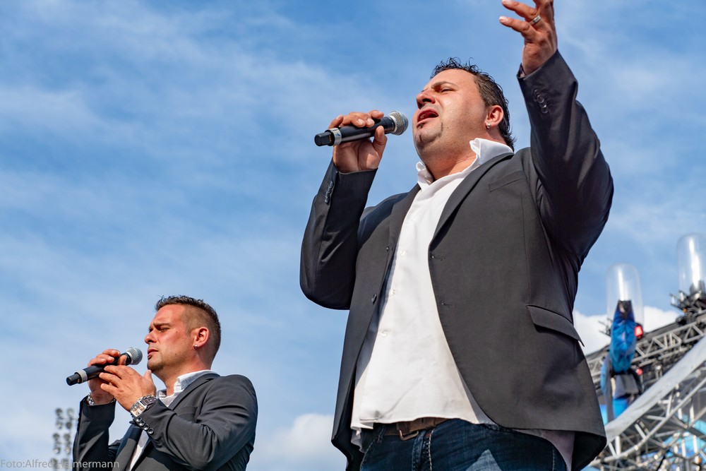 13._Heimspiel_Andrea_Berg__Freitag(1) Mechatronikarena Aspach, 20.7.2018 15000 Besucher waren zum 1. Konzert des 13. Andrea Berg Heimspiel in die Arena in der Fautenau gekommen. Durch die Hitze waren im Vorprogramm nicht soviele Fans wie sonst an der Bühne. Rebel Tell und Sunrise waren Künstler, die im Vorprogramm für die meiste Stimmung sorgten, aber es traten noch andere Künstler auf, u.a. eine Sängerin aus Kleinaspach. Gegen 21 Uhr dann der große Moment, als der Schmetterlingvorhang fiel und Andrea ihr 3 stündiges Konzert begann, sie strahlte mit einem lächeln den ganzen Abend, man merkte, sie freute sich, so wie auch ihre Fans. Mit einem großen Feuerwerk endete ein schöner Sommerabend. |