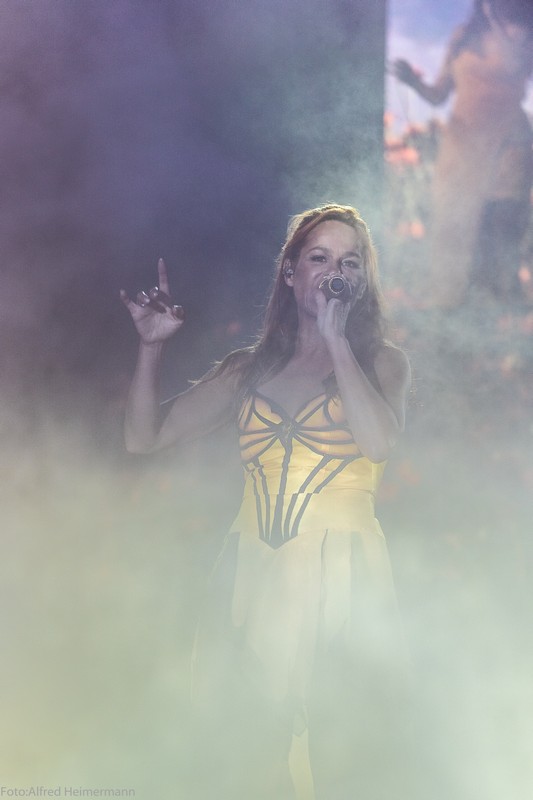13._Heimspiel_Andrea_Berg__Freitag(1) Mechatronikarena Aspach, 20.7.2018 15000 Besucher waren zum 1. Konzert des 13. Andrea Berg Heimspiel in die Arena in der Fautenau gekommen. Durch die Hitze waren im Vorprogramm nicht soviele Fans wie sonst an der Bühne. Rebel Tell und Sunrise waren Künstler, die im Vorprogramm für die meiste Stimmung sorgten, aber es traten noch andere Künstler auf, u.a. eine Sängerin aus Kleinaspach. Gegen 21 Uhr dann der große Moment, als der Schmetterlingvorhang fiel und Andrea ihr 3 stündiges Konzert begann, sie strahlte mit einem lächeln den ganzen Abend, man merkte, sie freute sich, so wie auch ihre Fans. Mit einem großen Feuerwerk endete ein schöner Sommerabend. |