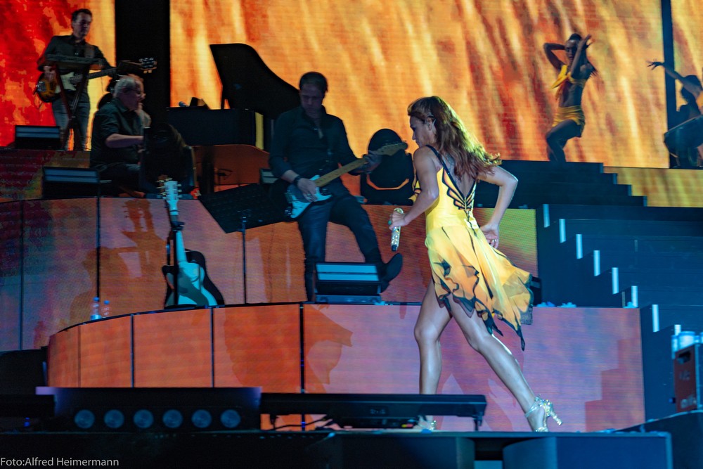 13._Heimspiel_Andrea_Berg__Freitag(1) Mechatronikarena Aspach, 20.7.2018 15000 Besucher waren zum 1. Konzert des 13. Andrea Berg Heimspiel in die Arena in der Fautenau gekommen. Durch die Hitze waren im Vorprogramm nicht soviele Fans wie sonst an der Bühne. Rebel Tell und Sunrise waren Künstler, die im Vorprogramm für die meiste Stimmung sorgten, aber es traten noch andere Künstler auf, u.a. eine Sängerin aus Kleinaspach. Gegen 21 Uhr dann der große Moment, als der Schmetterlingvorhang fiel und Andrea ihr 3 stündiges Konzert begann, sie strahlte mit einem lächeln den ganzen Abend, man merkte, sie freute sich, so wie auch ihre Fans. Mit einem großen Feuerwerk endete ein schöner Sommerabend. |