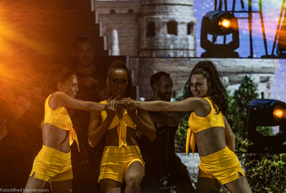 13._Heimspiel_Andrea_Berg__Freitag(1) Mechatronikarena Aspach, 20.7.2018 15000 Besucher waren zum 1. Konzert des 13. Andrea Berg Heimspiel in die Arena in der Fautenau gekommen. Durch die Hitze waren im Vorprogramm nicht soviele Fans wie sonst an der Bühne. Rebel Tell und Sunrise waren Künstler, die im Vorprogramm für die meiste Stimmung sorgten, aber es traten noch andere Künstler auf, u.a. eine Sängerin aus Kleinaspach. Gegen 21 Uhr dann der große Moment, als der Schmetterlingvorhang fiel und Andrea ihr 3 stündiges Konzert begann, sie strahlte mit einem lächeln den ganzen Abend, man merkte, sie freute sich, so wie auch ihre Fans. Mit einem großen Feuerwerk endete ein schöner Sommerabend. |