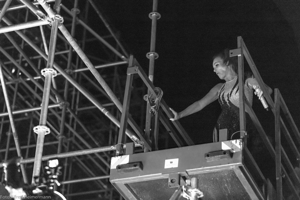 13._Heimspiel_Andrea_Berg__Freitag(1) Mechatronikarena Aspach, 20.7.2018 15000 Besucher waren zum 1. Konzert des 13. Andrea Berg Heimspiel in die Arena in der Fautenau gekommen. Durch die Hitze waren im Vorprogramm nicht soviele Fans wie sonst an der Bühne. Rebel Tell und Sunrise waren Künstler, die im Vorprogramm für die meiste Stimmung sorgten, aber es traten noch andere Künstler auf, u.a. eine Sängerin aus Kleinaspach. Gegen 21 Uhr dann der große Moment, als der Schmetterlingvorhang fiel und Andrea ihr 3 stündiges Konzert begann, sie strahlte mit einem lächeln den ganzen Abend, man merkte, sie freute sich, so wie auch ihre Fans. Mit einem großen Feuerwerk endete ein schöner Sommerabend. |