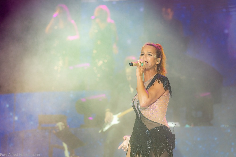 13._Heimspiel_Andrea_Berg__Freitag(1) Mechatronikarena Aspach, 20.7.2018 15000 Besucher waren zum 1. Konzert des 13. Andrea Berg Heimspiel in die Arena in der Fautenau gekommen. Durch die Hitze waren im Vorprogramm nicht soviele Fans wie sonst an der Bühne. Rebel Tell und Sunrise waren Künstler, die im Vorprogramm für die meiste Stimmung sorgten, aber es traten noch andere Künstler auf, u.a. eine Sängerin aus Kleinaspach. Gegen 21 Uhr dann der große Moment, als der Schmetterlingvorhang fiel und Andrea ihr 3 stündiges Konzert begann, sie strahlte mit einem lächeln den ganzen Abend, man merkte, sie freute sich, so wie auch ihre Fans. Mit einem großen Feuerwerk endete ein schöner Sommerabend. |
