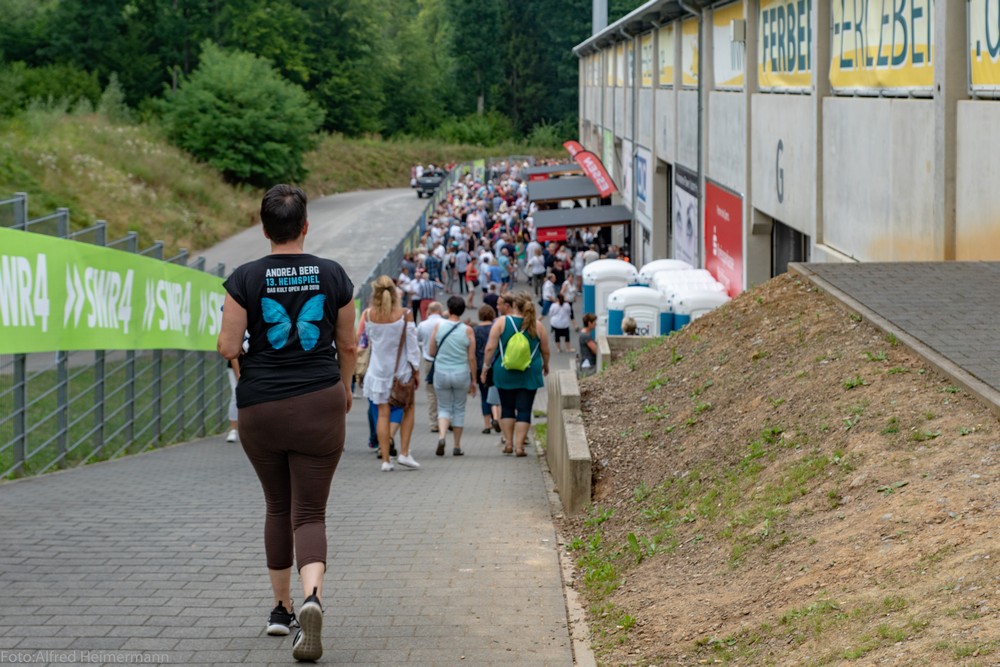 13._Heimspiel_Andrea_Berg__Freitag(1) Mechatronikarena Aspach, 20.7.2018 15000 Besucher waren zum 1. Konzert des 13. Andrea Berg Heimspiel in die Arena in der Fautenau gekommen. Durch die Hitze waren im Vorprogramm nicht soviele Fans wie sonst an der Bühne. Rebel Tell und Sunrise waren Künstler, die im Vorprogramm für die meiste Stimmung sorgten, aber es traten noch andere Künstler auf, u.a. eine Sängerin aus Kleinaspach. Gegen 21 Uhr dann der große Moment, als der Schmetterlingvorhang fiel und Andrea ihr 3 stündiges Konzert begann, sie strahlte mit einem lächeln den ganzen Abend, man merkte, sie freute sich, so wie auch ihre Fans. Mit einem großen Feuerwerk endete ein schöner Sommerabend. |