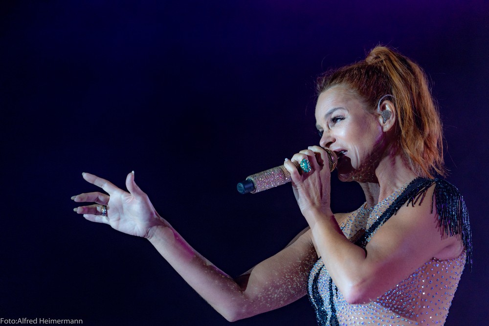 13._Heimspiel_Andrea_Berg__Freitag(1) Mechatronikarena Aspach, 20.7.2018 15000 Besucher waren zum 1. Konzert des 13. Andrea Berg Heimspiel in die Arena in der Fautenau gekommen. Durch die Hitze waren im Vorprogramm nicht soviele Fans wie sonst an der Bühne. Rebel Tell und Sunrise waren Künstler, die im Vorprogramm für die meiste Stimmung sorgten, aber es traten noch andere Künstler auf, u.a. eine Sängerin aus Kleinaspach. Gegen 21 Uhr dann der große Moment, als der Schmetterlingvorhang fiel und Andrea ihr 3 stündiges Konzert begann, sie strahlte mit einem lächeln den ganzen Abend, man merkte, sie freute sich, so wie auch ihre Fans. Mit einem großen Feuerwerk endete ein schöner Sommerabend. |