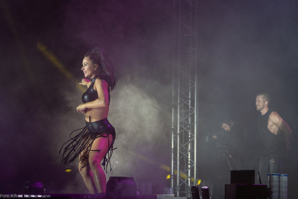 13._Heimspiel_Andrea_Berg__Freitag(1) Mechatronikarena Aspach, 20.7.2018 15000 Besucher waren zum 1. Konzert des 13. Andrea Berg Heimspiel in die Arena in der Fautenau gekommen. Durch die Hitze waren im Vorprogramm nicht soviele Fans wie sonst an der Bühne. Rebel Tell und Sunrise waren Künstler, die im Vorprogramm für die meiste Stimmung sorgten, aber es traten noch andere Künstler auf, u.a. eine Sängerin aus Kleinaspach. Gegen 21 Uhr dann der große Moment, als der Schmetterlingvorhang fiel und Andrea ihr 3 stündiges Konzert begann, sie strahlte mit einem lächeln den ganzen Abend, man merkte, sie freute sich, so wie auch ihre Fans. Mit einem großen Feuerwerk endete ein schöner Sommerabend. |