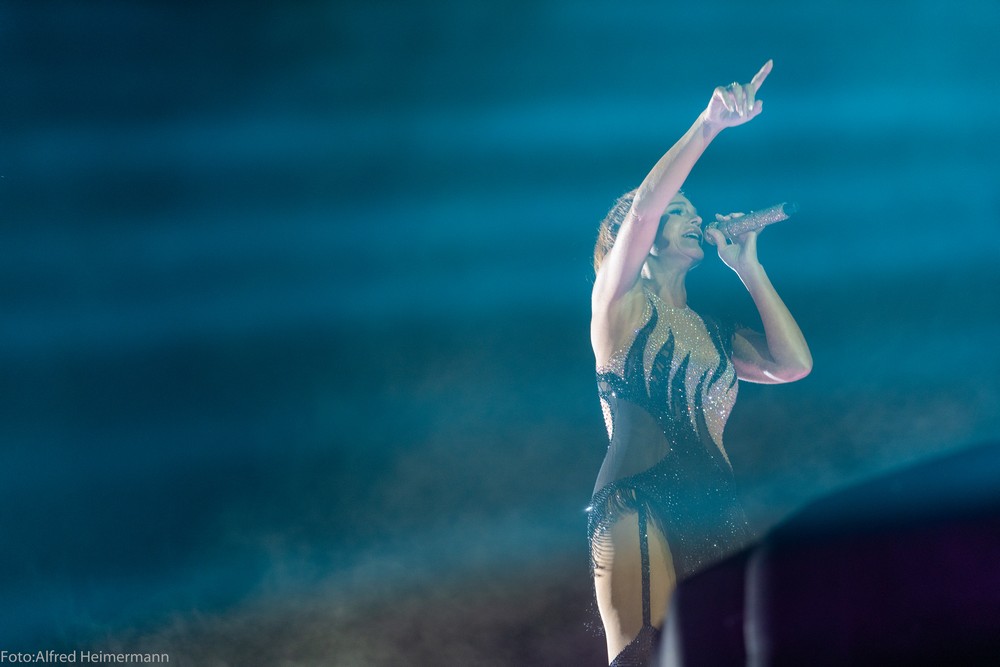 13._Heimspiel_Andrea_Berg__Freitag(1) Mechatronikarena Aspach, 20.7.2018 15000 Besucher waren zum 1. Konzert des 13. Andrea Berg Heimspiel in die Arena in der Fautenau gekommen. Durch die Hitze waren im Vorprogramm nicht soviele Fans wie sonst an der Bühne. Rebel Tell und Sunrise waren Künstler, die im Vorprogramm für die meiste Stimmung sorgten, aber es traten noch andere Künstler auf, u.a. eine Sängerin aus Kleinaspach. Gegen 21 Uhr dann der große Moment, als der Schmetterlingvorhang fiel und Andrea ihr 3 stündiges Konzert begann, sie strahlte mit einem lächeln den ganzen Abend, man merkte, sie freute sich, so wie auch ihre Fans. Mit einem großen Feuerwerk endete ein schöner Sommerabend. |