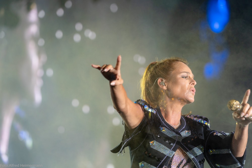 13._Heimspiel_Andrea_Berg__Freitag(1) Mechatronikarena Aspach, 20.7.2018 15000 Besucher waren zum 1. Konzert des 13. Andrea Berg Heimspiel in die Arena in der Fautenau gekommen. Durch die Hitze waren im Vorprogramm nicht soviele Fans wie sonst an der Bühne. Rebel Tell und Sunrise waren Künstler, die im Vorprogramm für die meiste Stimmung sorgten, aber es traten noch andere Künstler auf, u.a. eine Sängerin aus Kleinaspach. Gegen 21 Uhr dann der große Moment, als der Schmetterlingvorhang fiel und Andrea ihr 3 stündiges Konzert begann, sie strahlte mit einem lächeln den ganzen Abend, man merkte, sie freute sich, so wie auch ihre Fans. Mit einem großen Feuerwerk endete ein schöner Sommerabend. |
