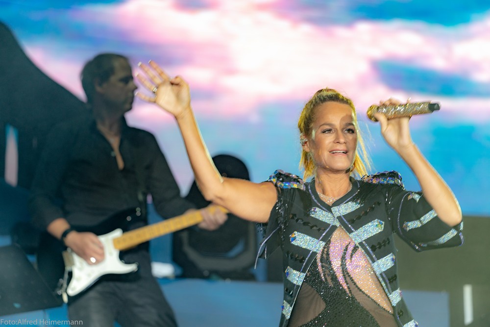 13._Heimspiel_Andrea_Berg__Freitag(1) Mechatronikarena Aspach, 20.7.2018 15000 Besucher waren zum 1. Konzert des 13. Andrea Berg Heimspiel in die Arena in der Fautenau gekommen. Durch die Hitze waren im Vorprogramm nicht soviele Fans wie sonst an der Bühne. Rebel Tell und Sunrise waren Künstler, die im Vorprogramm für die meiste Stimmung sorgten, aber es traten noch andere Künstler auf, u.a. eine Sängerin aus Kleinaspach. Gegen 21 Uhr dann der große Moment, als der Schmetterlingvorhang fiel und Andrea ihr 3 stündiges Konzert begann, sie strahlte mit einem lächeln den ganzen Abend, man merkte, sie freute sich, so wie auch ihre Fans. Mit einem großen Feuerwerk endete ein schöner Sommerabend. |