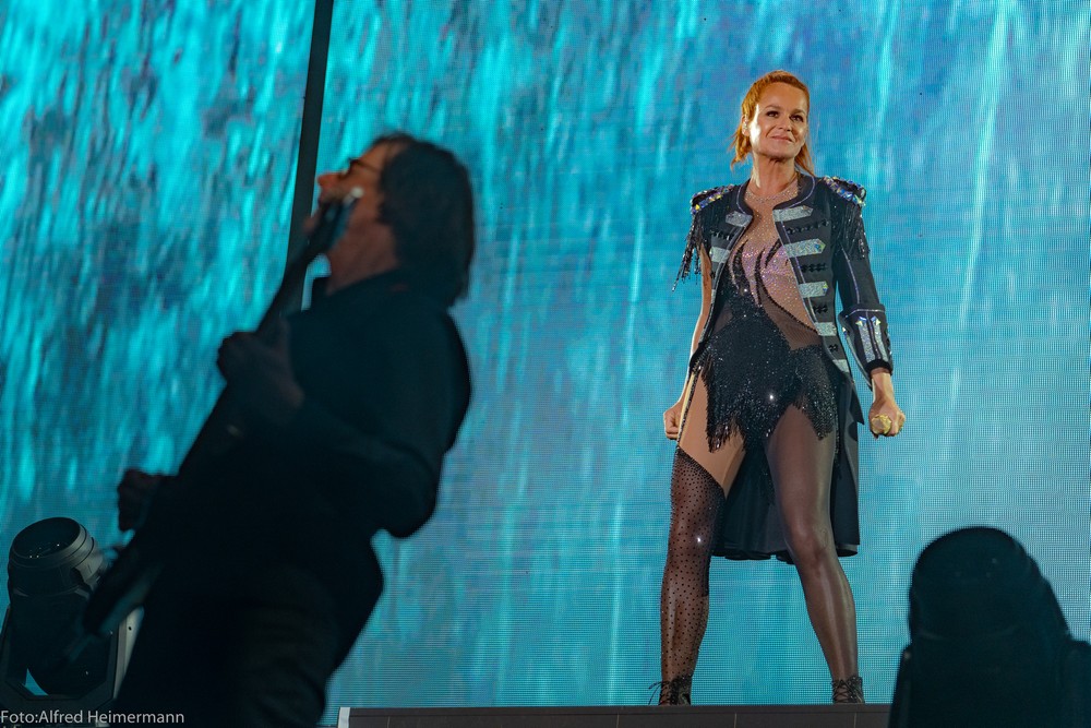 13._Heimspiel_Andrea_Berg__Freitag(1) Mechatronikarena Aspach, 20.7.2018 15000 Besucher waren zum 1. Konzert des 13. Andrea Berg Heimspiel in die Arena in der Fautenau gekommen. Durch die Hitze waren im Vorprogramm nicht soviele Fans wie sonst an der Bühne. Rebel Tell und Sunrise waren Künstler, die im Vorprogramm für die meiste Stimmung sorgten, aber es traten noch andere Künstler auf, u.a. eine Sängerin aus Kleinaspach. Gegen 21 Uhr dann der große Moment, als der Schmetterlingvorhang fiel und Andrea ihr 3 stündiges Konzert begann, sie strahlte mit einem lächeln den ganzen Abend, man merkte, sie freute sich, so wie auch ihre Fans. Mit einem großen Feuerwerk endete ein schöner Sommerabend. |