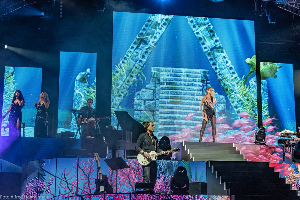 13._Heimspiel_Andrea_Berg__Freitag(1) Mechatronikarena Aspach, 20.7.2018 15000 Besucher waren zum 1. Konzert des 13. Andrea Berg Heimspiel in die Arena in der Fautenau gekommen. Durch die Hitze waren im Vorprogramm nicht soviele Fans wie sonst an der Bühne. Rebel Tell und Sunrise waren Künstler, die im Vorprogramm für die meiste Stimmung sorgten, aber es traten noch andere Künstler auf, u.a. eine Sängerin aus Kleinaspach. Gegen 21 Uhr dann der große Moment, als der Schmetterlingvorhang fiel und Andrea ihr 3 stündiges Konzert begann, sie strahlte mit einem lächeln den ganzen Abend, man merkte, sie freute sich, so wie auch ihre Fans. Mit einem großen Feuerwerk endete ein schöner Sommerabend. |