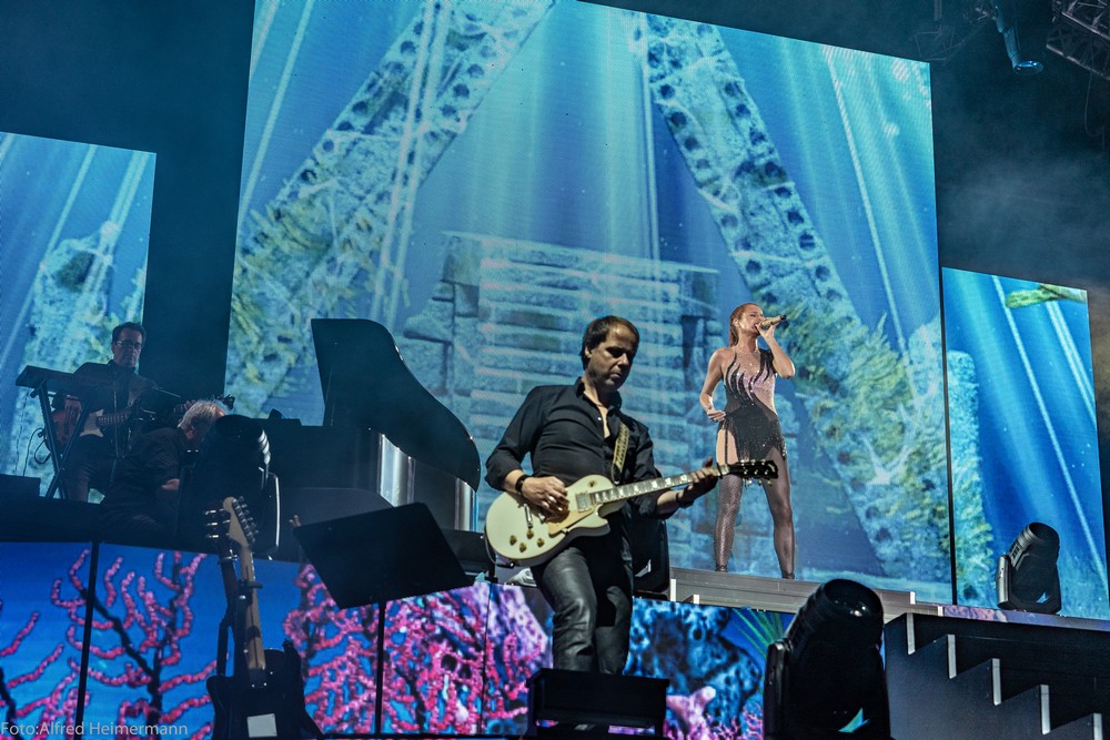 13._Heimspiel_Andrea_Berg__Freitag(1) Mechatronikarena Aspach, 20.7.2018 15000 Besucher waren zum 1. Konzert des 13. Andrea Berg Heimspiel in die Arena in der Fautenau gekommen. Durch die Hitze waren im Vorprogramm nicht soviele Fans wie sonst an der Bühne. Rebel Tell und Sunrise waren Künstler, die im Vorprogramm für die meiste Stimmung sorgten, aber es traten noch andere Künstler auf, u.a. eine Sängerin aus Kleinaspach. Gegen 21 Uhr dann der große Moment, als der Schmetterlingvorhang fiel und Andrea ihr 3 stündiges Konzert begann, sie strahlte mit einem lächeln den ganzen Abend, man merkte, sie freute sich, so wie auch ihre Fans. Mit einem großen Feuerwerk endete ein schöner Sommerabend. |