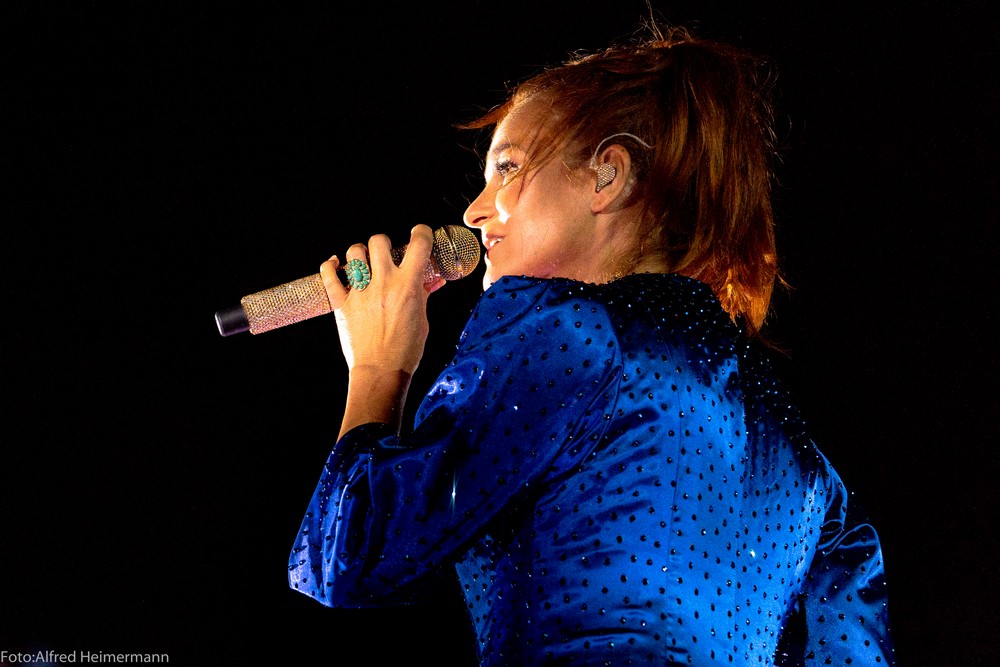 13._Heimspiel_Andrea_Berg__Freitag(1) Mechatronikarena Aspach, 20.7.2018 15000 Besucher waren zum 1. Konzert des 13. Andrea Berg Heimspiel in die Arena in der Fautenau gekommen. Durch die Hitze waren im Vorprogramm nicht soviele Fans wie sonst an der Bühne. Rebel Tell und Sunrise waren Künstler, die im Vorprogramm für die meiste Stimmung sorgten, aber es traten noch andere Künstler auf, u.a. eine Sängerin aus Kleinaspach. Gegen 21 Uhr dann der große Moment, als der Schmetterlingvorhang fiel und Andrea ihr 3 stündiges Konzert begann, sie strahlte mit einem lächeln den ganzen Abend, man merkte, sie freute sich, so wie auch ihre Fans. Mit einem großen Feuerwerk endete ein schöner Sommerabend. |
